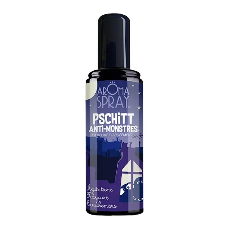 PSCHITT ANTI-MONSTRES est conçu à base d’Eau florale de fleur d’Oranger 100% naturelles de Camomille et Néroli possède des vertus relaxantes, calmantes et décontractantes qui aideront à mieux dormir. testé sous contrôle dermatologique.